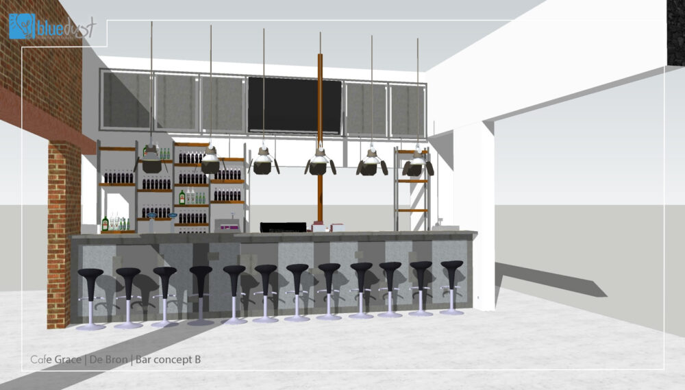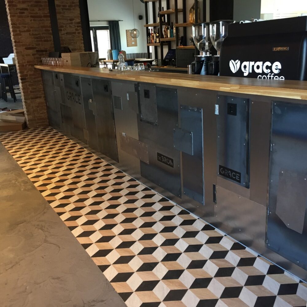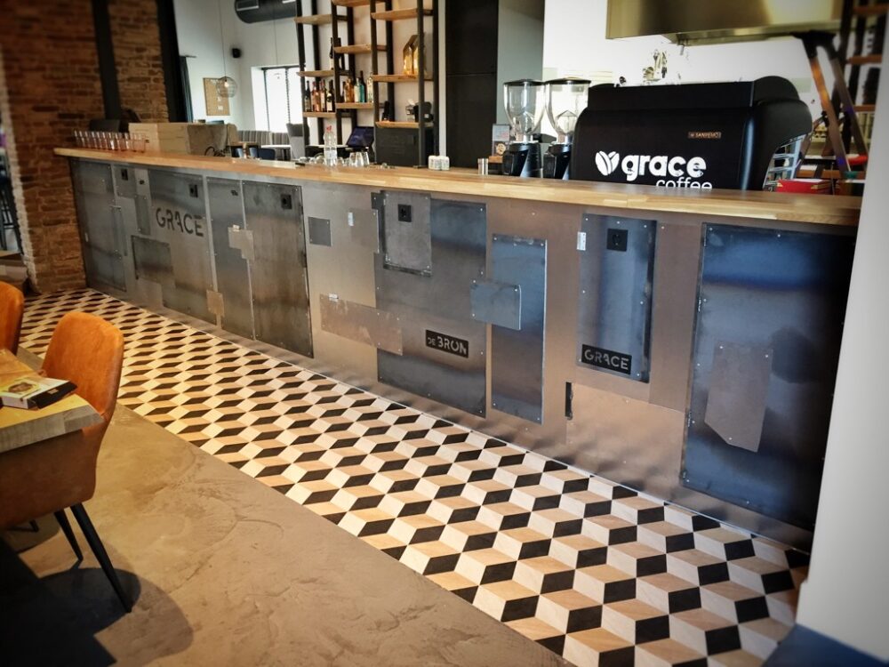 Voor Lunchroom Grace in Bunschoten ontwikkelden wij de bar en verbinding met de open keuken.